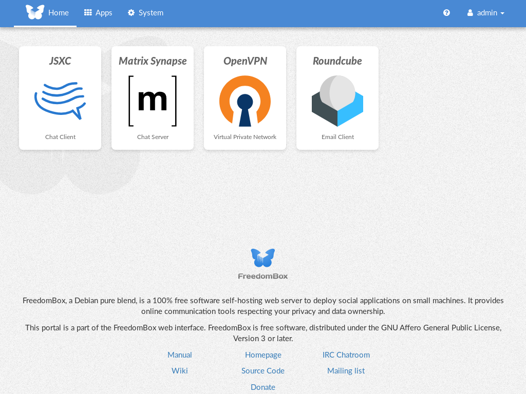 You can find more information about FreedomBox Service (Plinth) on the Plinth Wiki page, the FreedomBox Wiki and the FreedomBox Manual.